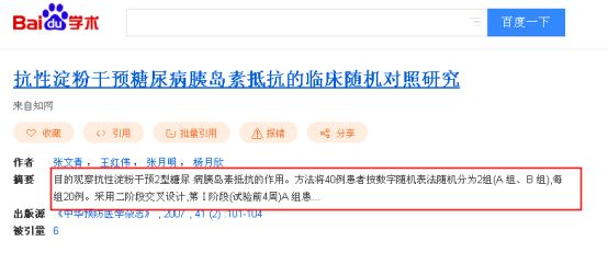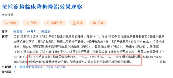 许多研究发现,抗性淀粉能够提高胰岛素的敏感性,并且抗性淀粉对于餐后血糖的降低也起到很好的作用。